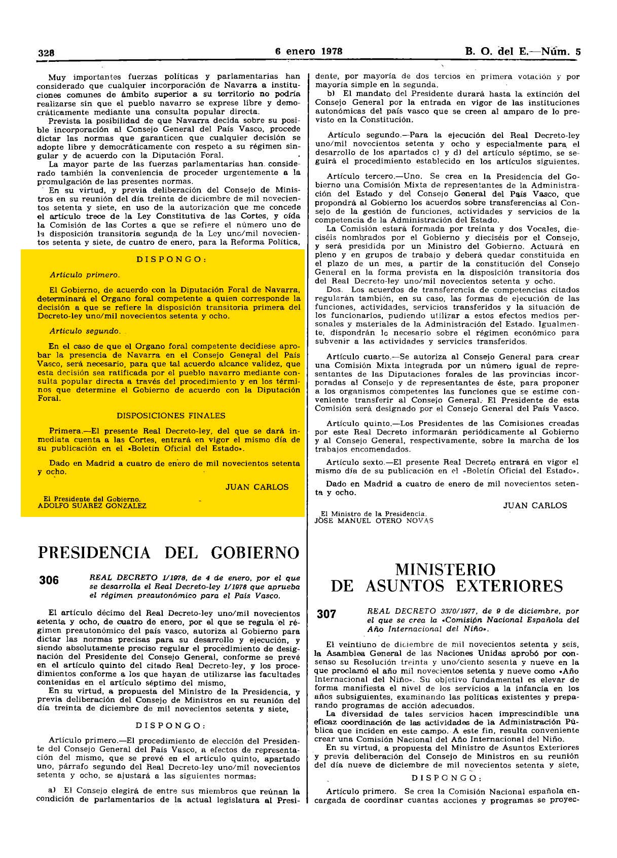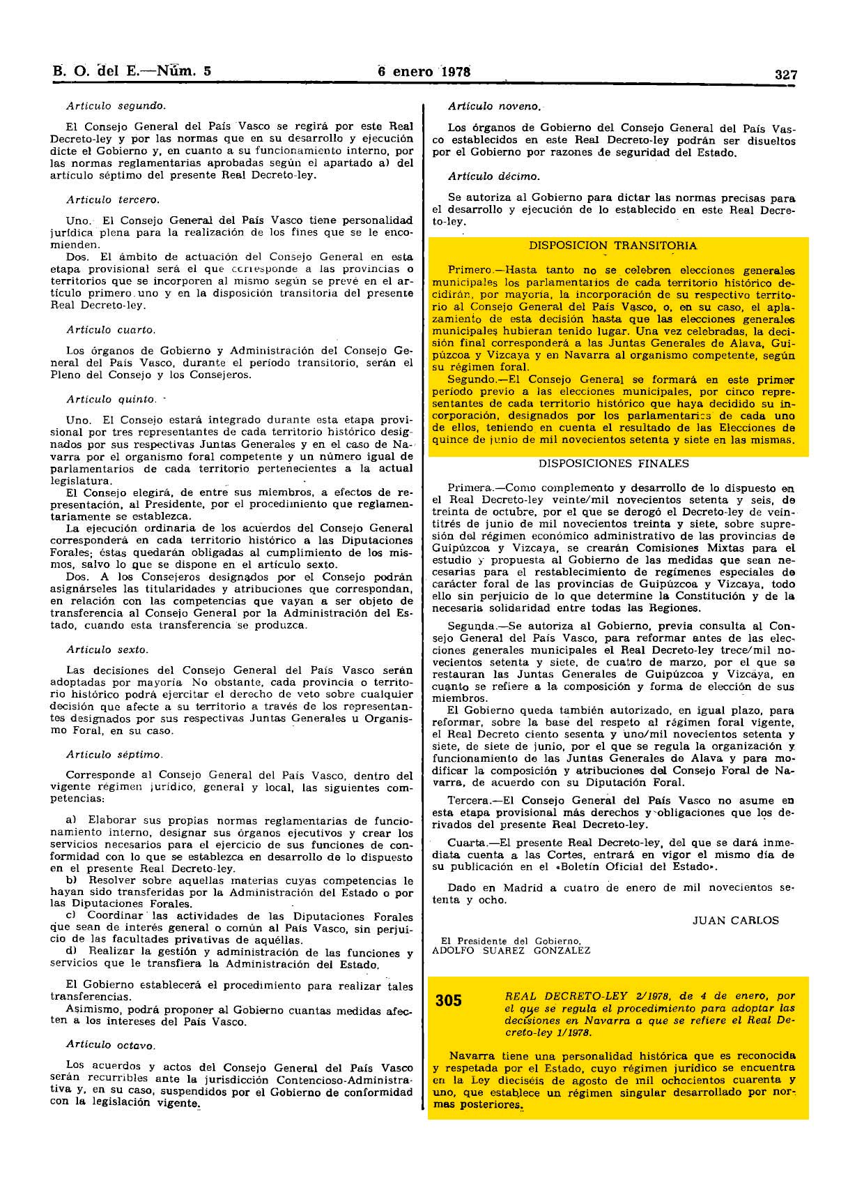 En el contexto de los regímenes preautonómicos –el interés del Gobierno puesto de manera especial en Cataluña– surgió el debate sobre la identidad de Navarra. Al lema «Nafarroa Euskadi da» de algunos se alzaron otros: «Navarra es Navarra. Navarra es España» o «Viva Navarra Foral y Española». El Real Decreto Ley 2 de 1978, fruto del consenso, reguló el derecho a decidir de navarros y navarras.