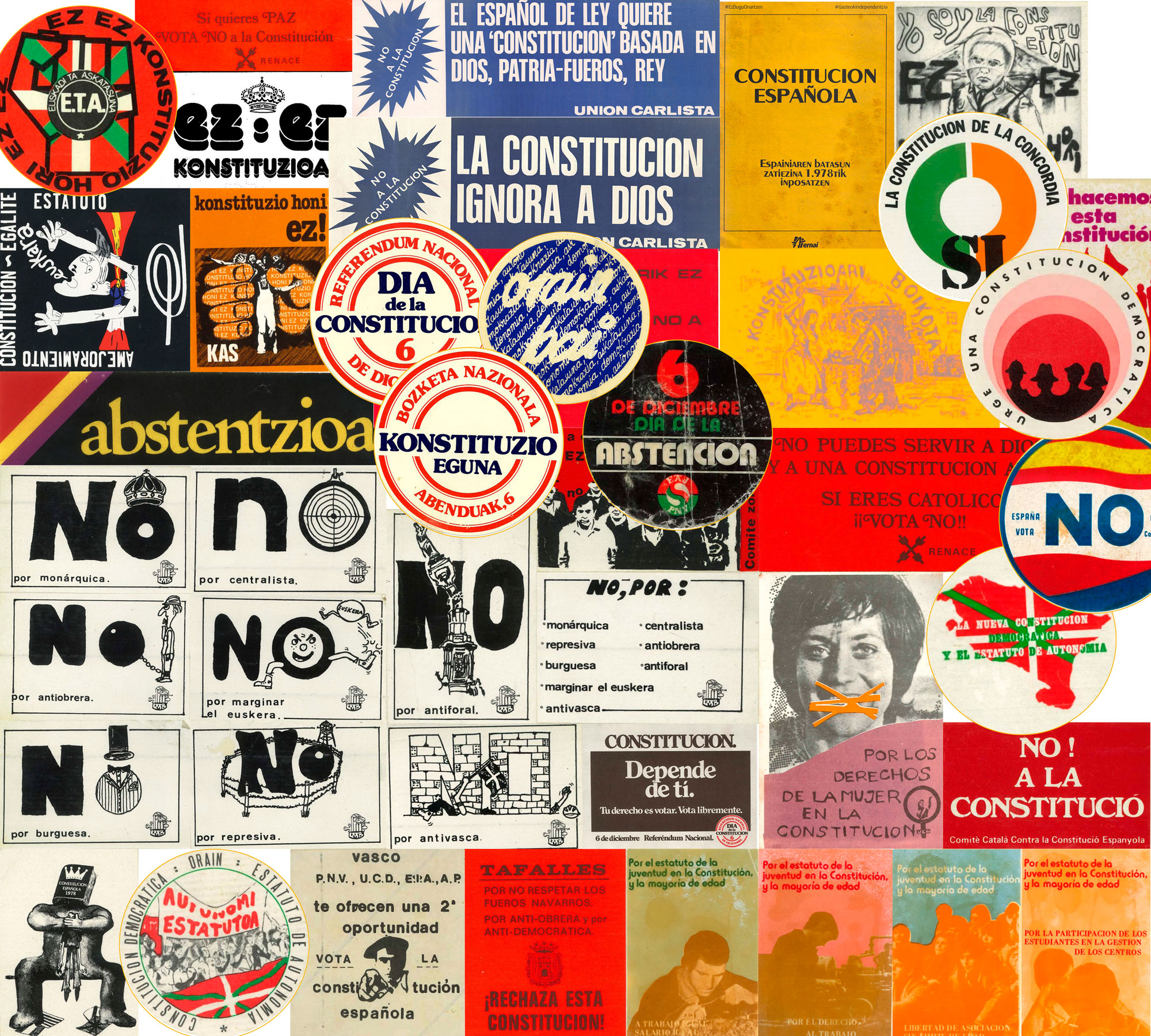Pegatinas, carteles y todo tipo de soportes fueron utilizados por los partidos políticos y la ciudadanía para expresar su posición ante la Constitución.
