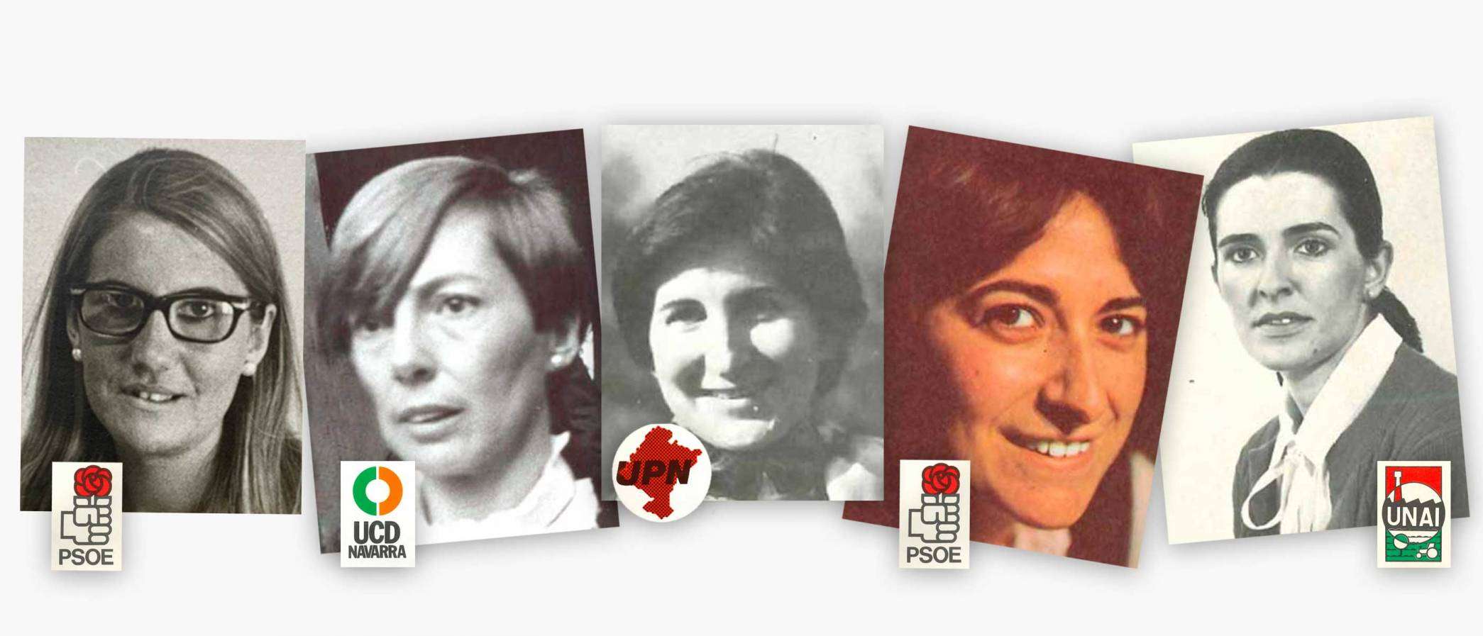 De los 350 diputados, solo 21 eran mujeres en 1977; 18 en 1979 y 17 en 1982. En 1977 en Navarra, como en Aragón, Baleares, Cantabria, Castilla – La Mancha, Murcia, País Vasco y La Rioja, ninguna mujer obtuvo el acta de diputada*. Aunque una navarra, Julia Álvarez Resano, fue diputada por Madrid en 1936, la primera representante en Cortes elegida por Navarra, Reyes Berruezo, no llegaría hasta 1984, eso sí, en el Parlamento Foral resultaron elegidas tres mujeres: María Jesús Aranda, Reyes Berruezo y Clara García Iricibar. Pero más allá del Congreso, las mujeres tuvieron un papel relevante durante la Transición, organizándose en la sociedad civil y participando en la vida política de los distintos partidos. En el ámbito local, ocuparon cargos de responsabilidad.