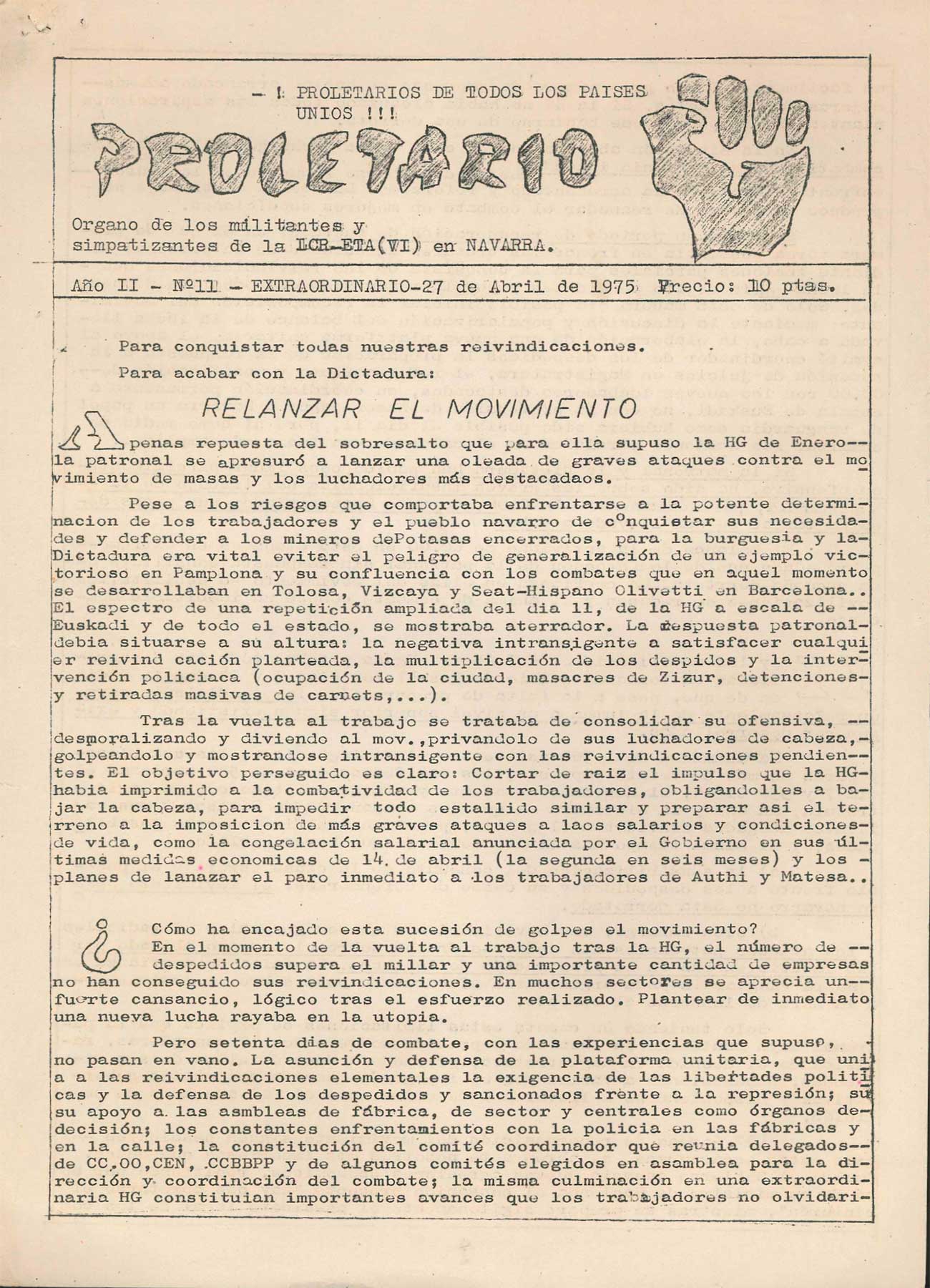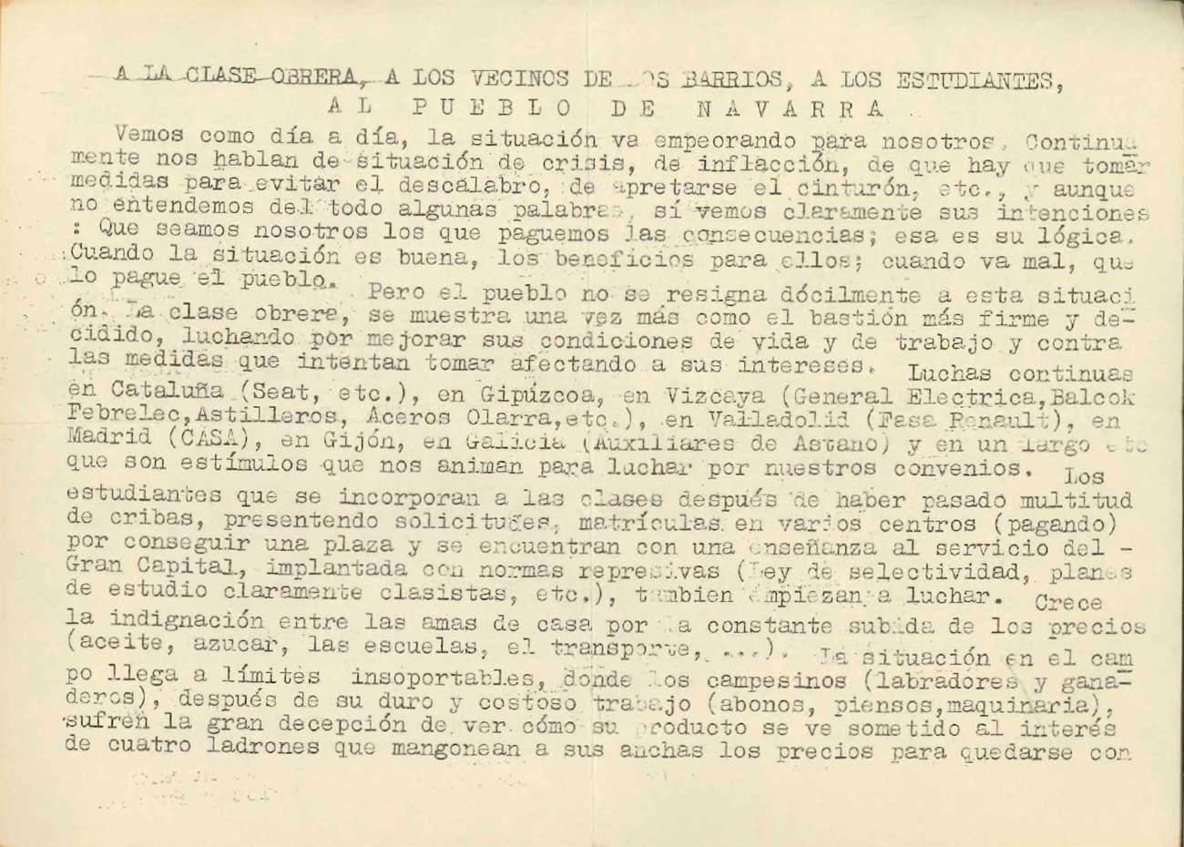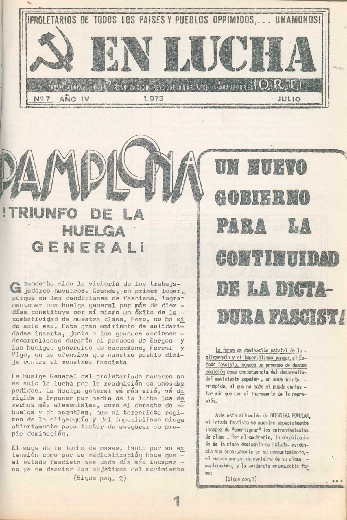 En 1964 el movimiento obrero volvió a manifestarse en Pamplona por el 1º de Mayo. Tres años después, la celebración del Aberri Eguna fue duramente reprimida por la policía. Las mejoras salariales y en las condiciones de trabajo, las libertades políticas, la amnistía, reivindicación nacional vasca o la revolución fueron las proclamas de unos conflictos que se sucedieron durante el inicio de la década siguiente. La movilización social (con huelgas en industrias como Authi, Eaton o Motor Ibérica) alcanzó su clímax durante el Proceso de Burgos, la huelga del 11 de diciembre de 1974 y el encierro minero de la empresa Potasas de enero de 1975. El período vino jalonado de una fuerte actividad de ETA, de los grupos de la izquierda revolucionaria y la dura represión del régimen que decretó nuevos estados de excepción.