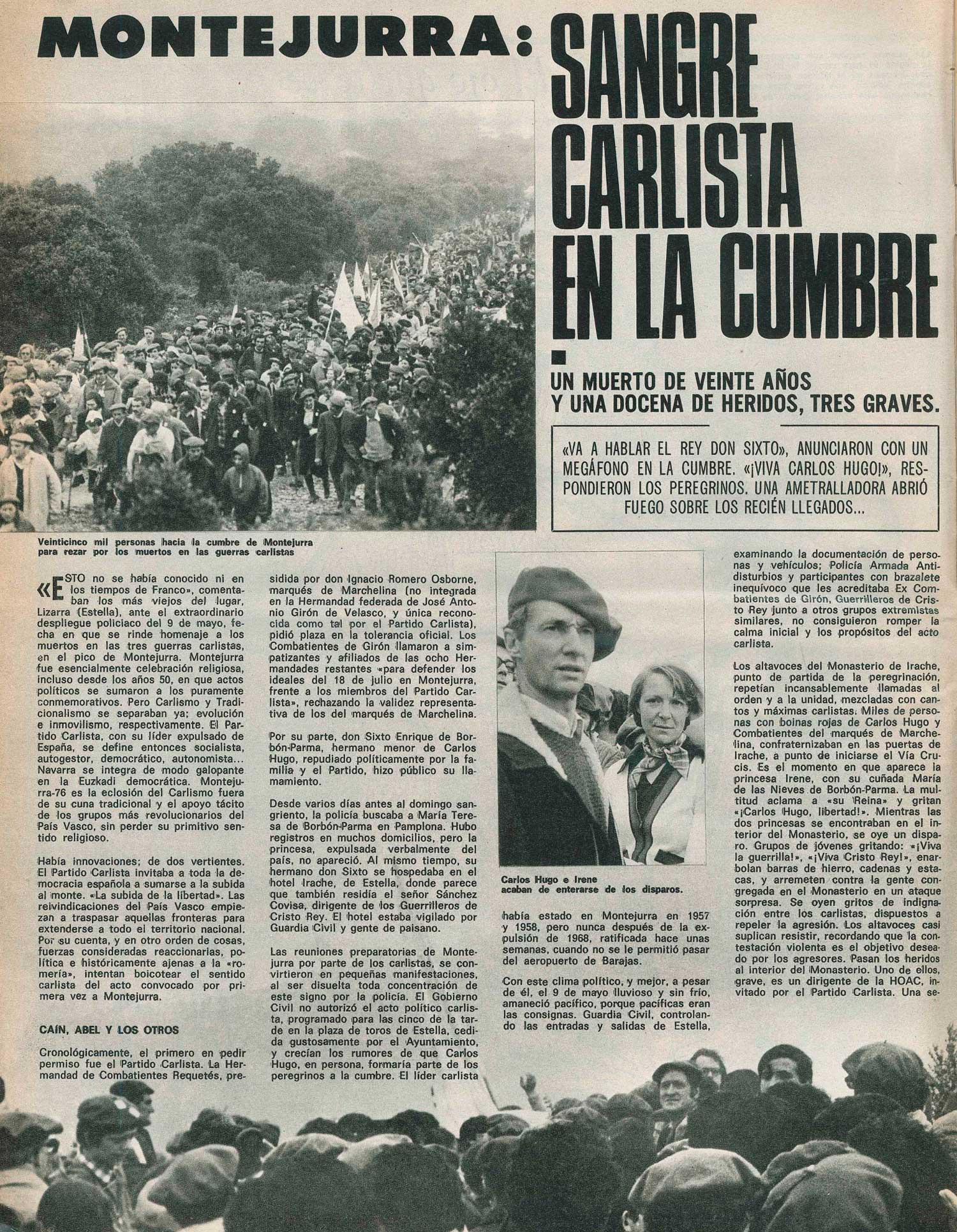 Reportaje sobre los sucesos de Montejurra en mayo de 1976 recogido en Sábado gráfico: magazine del hogar.