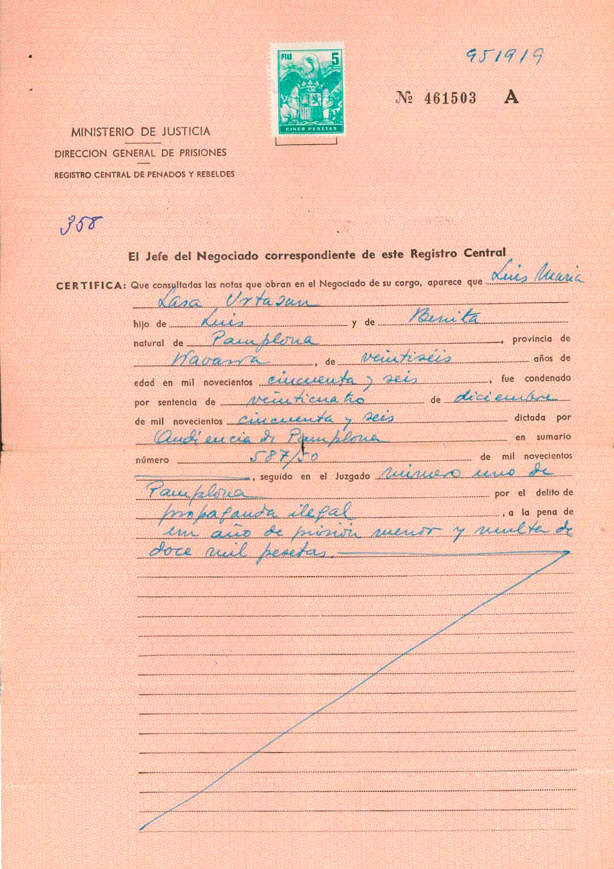El asesinato de Maravillas Lamberto en 1936 es uno de los símbolos del terror franquista en Navarra. La represión física y el hostigamiento contra las personas significadas políticamente continuó durante la dictadura. Tras la muerte de Franco, las autoridades denegaban las asociaciones de barrio o la ikurriña. Tanto la policía como los grupos de la ultraderecha cometieron desmanes y actos de violencia. Un ejemplo de esto último fueron los Sucesos de Montejurra de 1976.
