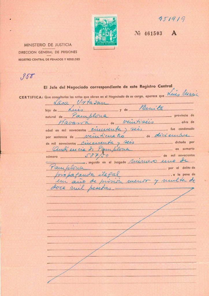 El asesinato de Maravillas Lamberto en 1936 es uno de los símbolos del terror franquista en Navarra. La represión física y el hostigamiento contra las personas significadas políticamente continuó durante la dictadura. Tras la muerte de Franco, las autoridades denegaban las asociaciones de barrio o la ikurriña. Tanto la policía como los grupos de la ultraderecha cometieron desmanes y actos de violencia. Un ejemplo de esto último fueron los Sucesos de Montejurra de 1976.